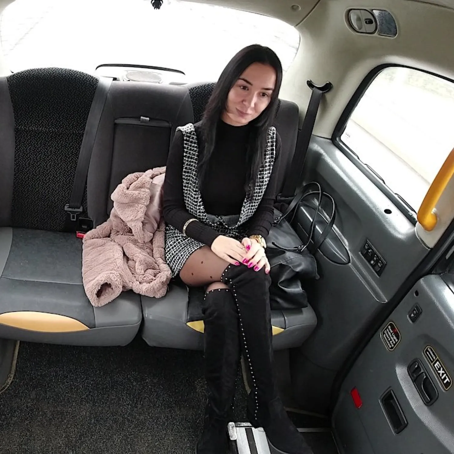 Dziewczyna pieprzy się w taksówce bez skrępowania